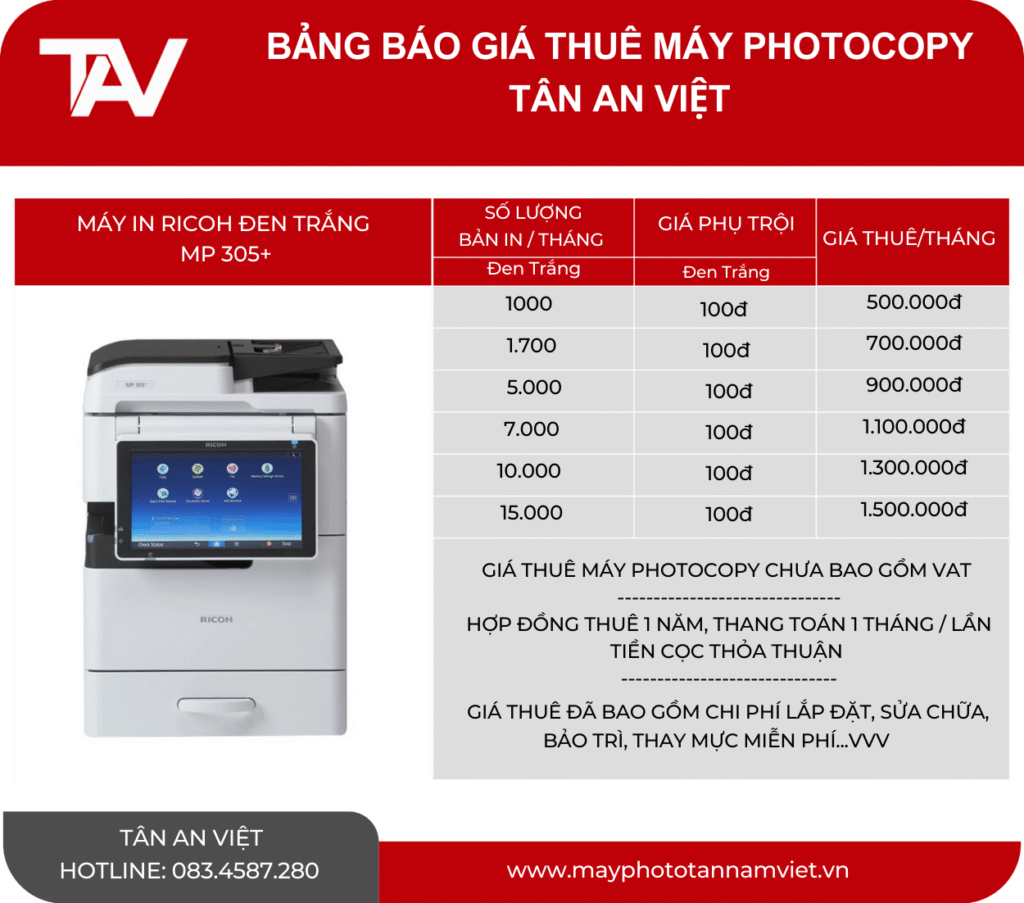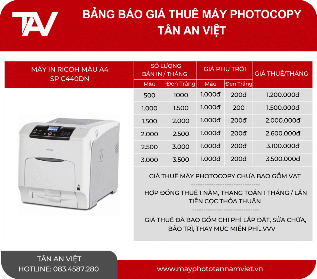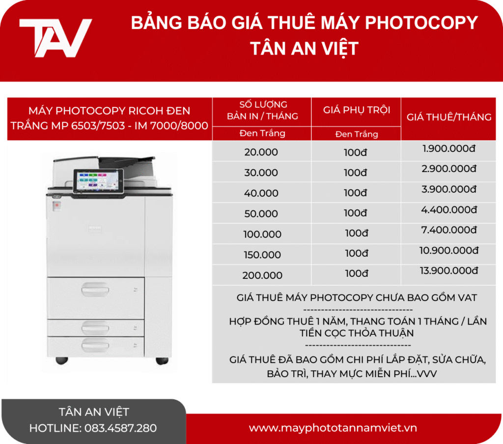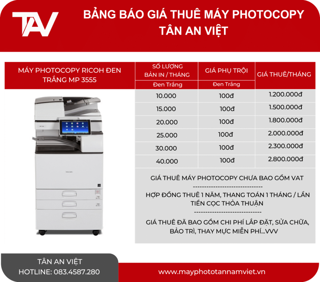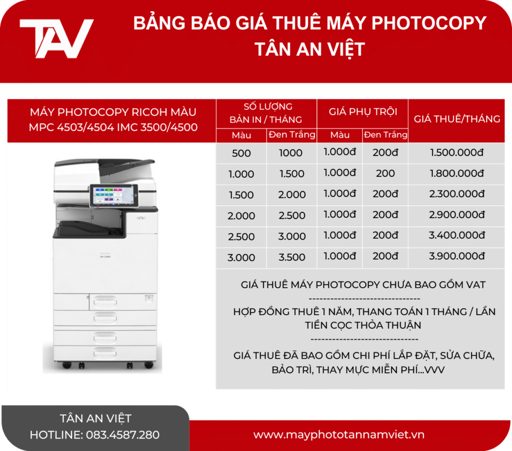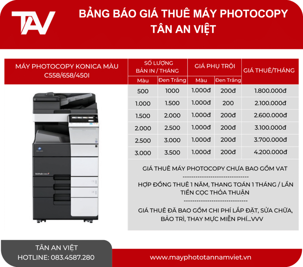 Bảng giá cho thuê máy photocopy tân an việt ngày hôm nay