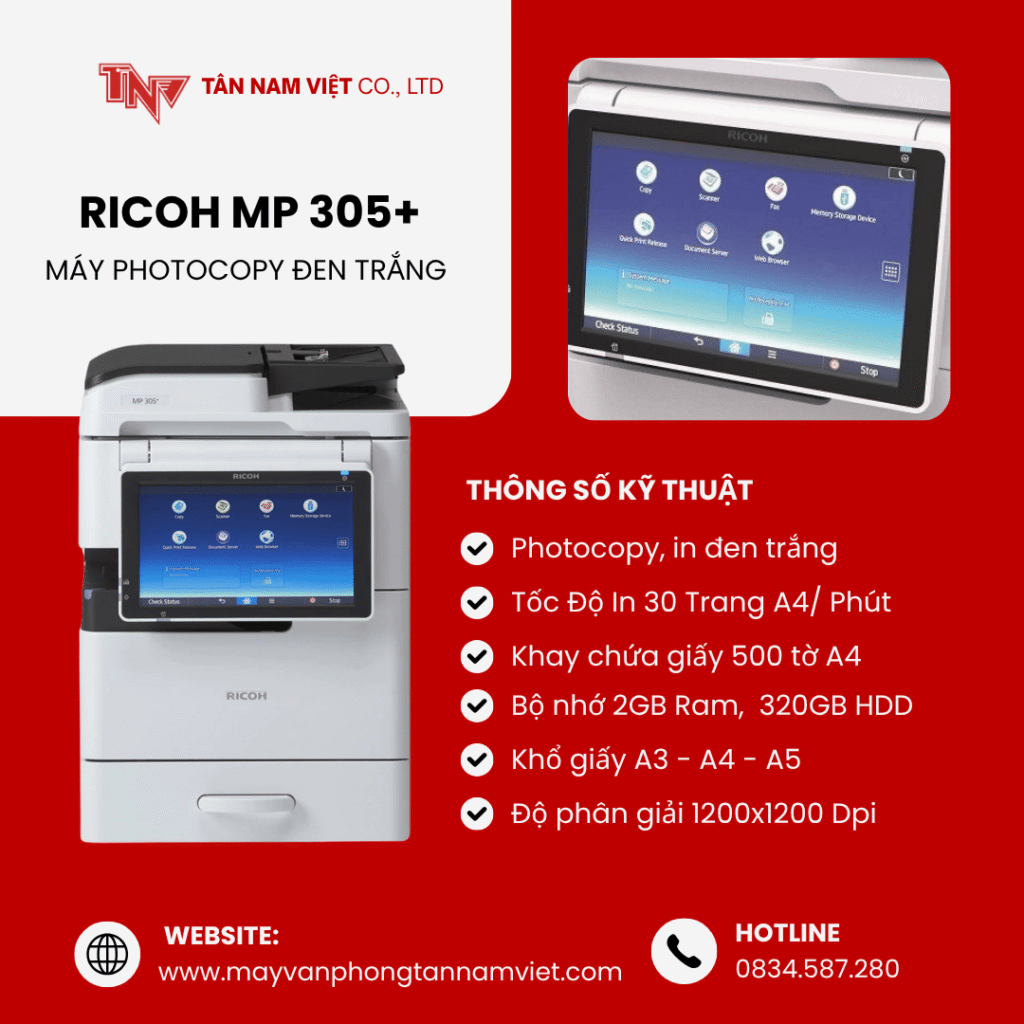 Cấu hình máy photocopy để bàn khổ A3 RICOH MP 305+ SPF.