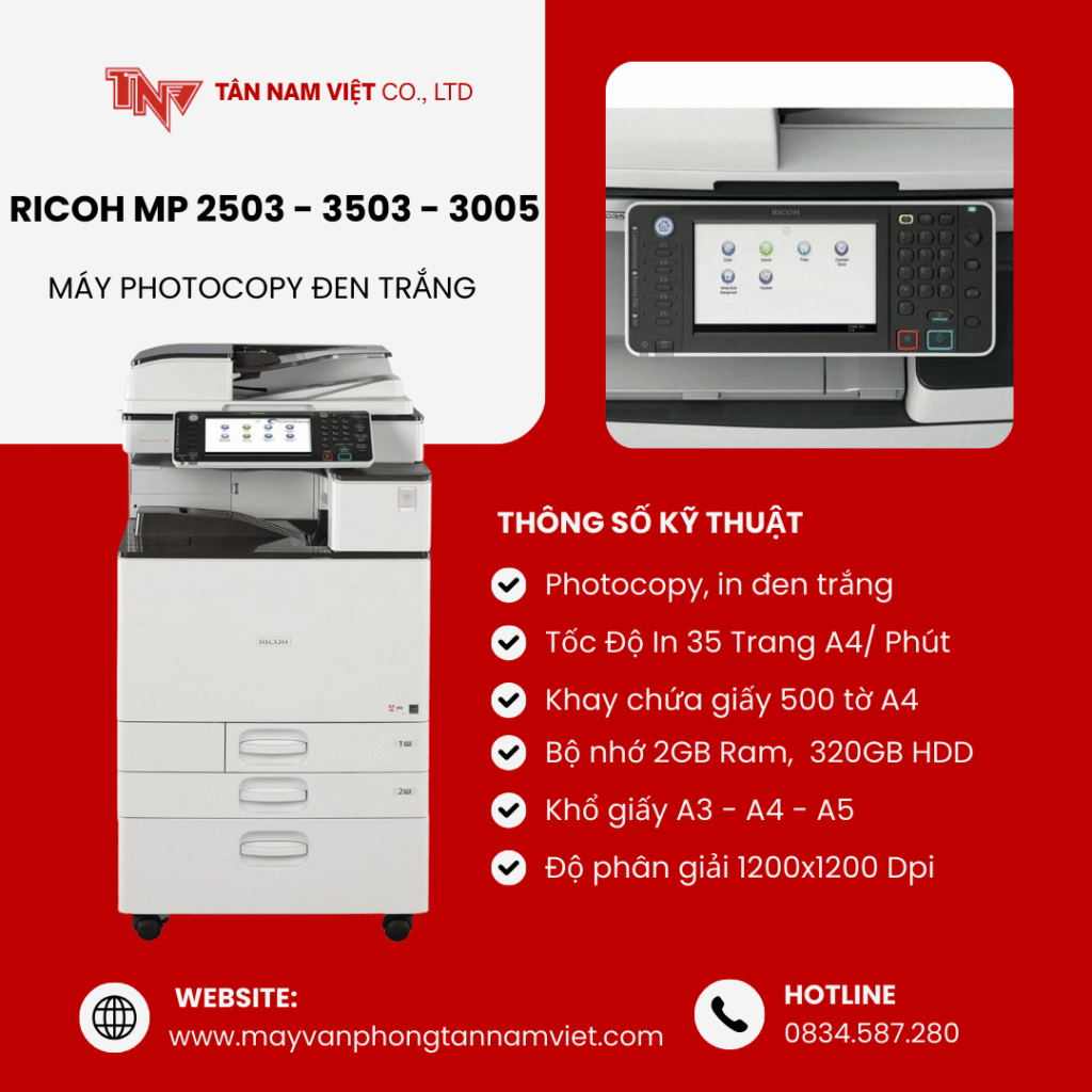 Thông số kỹ thuật cơ bản máy photocopy Ricoh MPC 3503